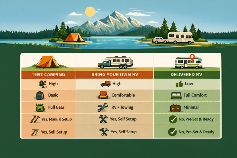 Camp in comfort! Book one of our cozy RVs